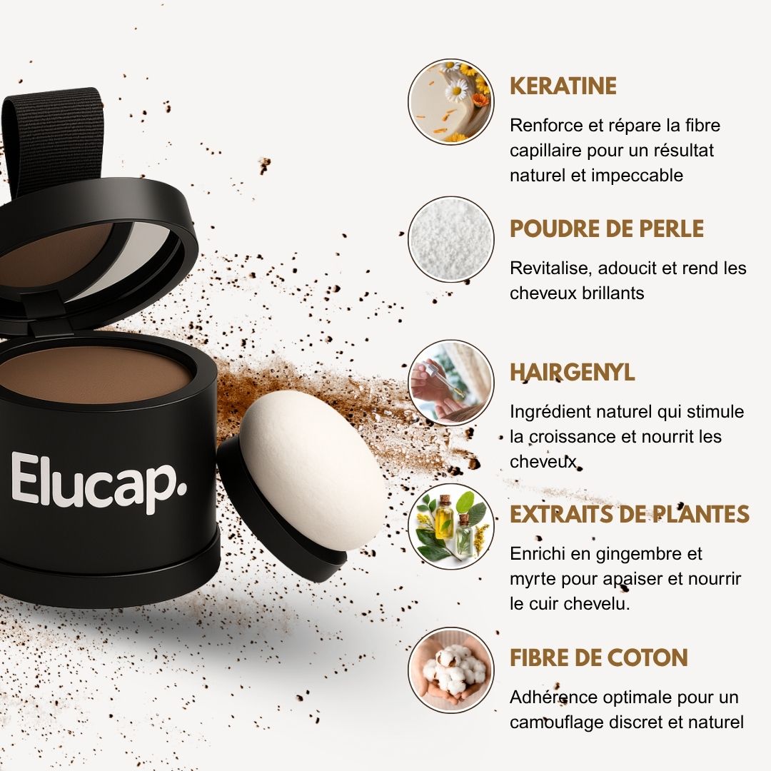 Découvrez la puissance du volume Elucap™. Composée de coton naturel micronisé, notre poudre capillaire redonne densité et confiance instantanément. Grâce à la technologie NaturalCotton™, elle tient 48h, résiste à l’eau et reste invisible toute la journée.