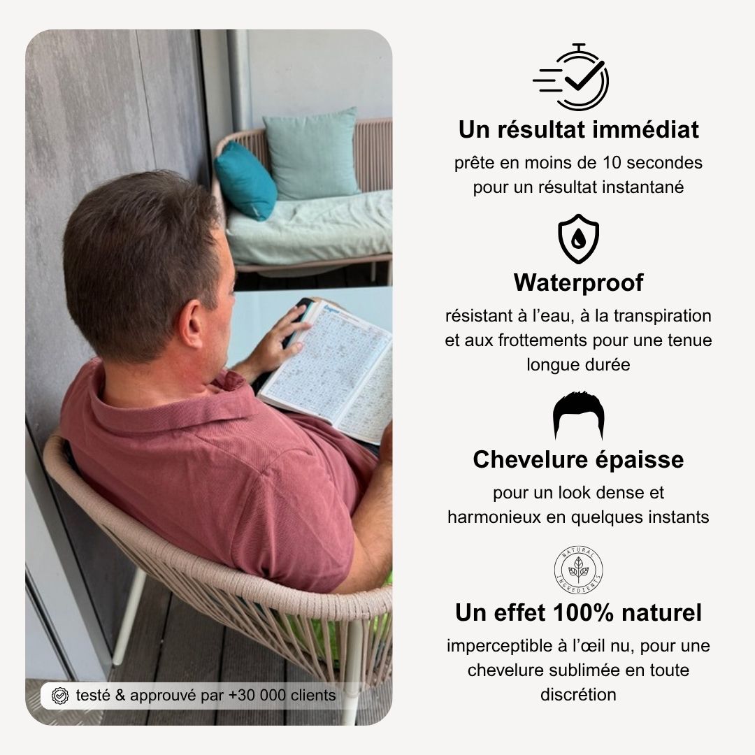 Une poudre capillaire densifiante instantanée, formulée à base de microfibres naturelles, qui camoufle la calvitie et les zones clairsemées en quelques secondes, sans chirurgie ni traitement lourd. Résultat naturel garanti dès la première utilisation.